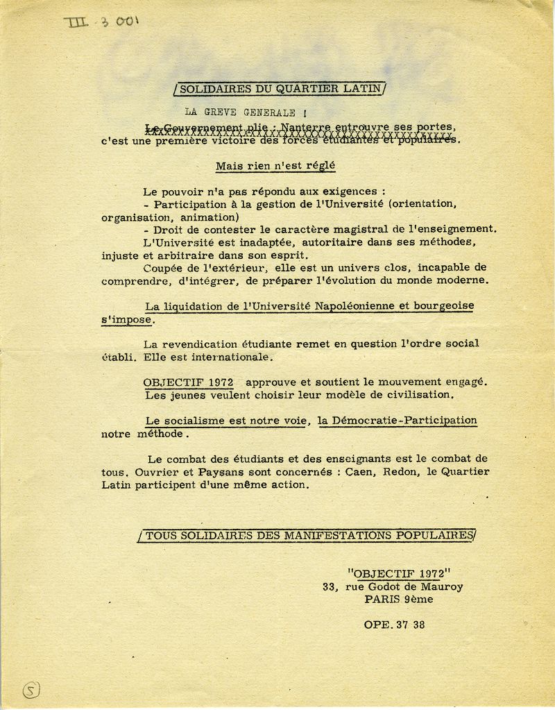 Destruction de l'université Grève générale Solidarité étudiants-salariés Solidarité étudiants-paysans Cogestion de l'université Socialisme![]() |