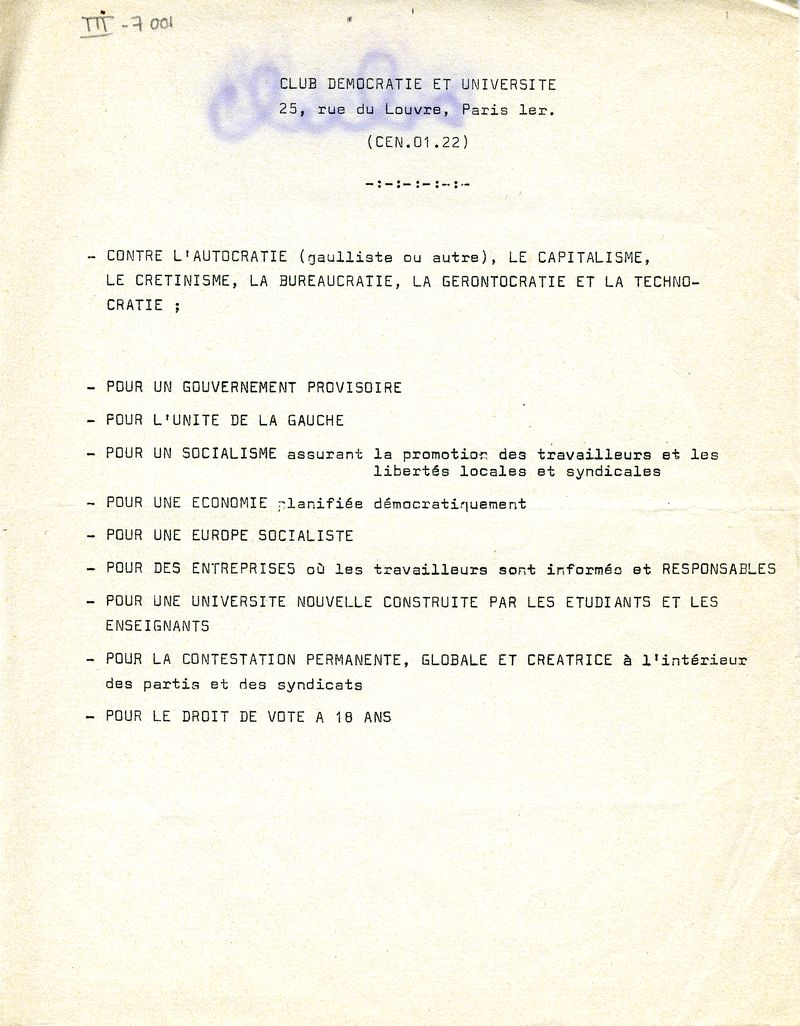 Notice n° 469 [Revendications du Club Démocratie et Université] | |