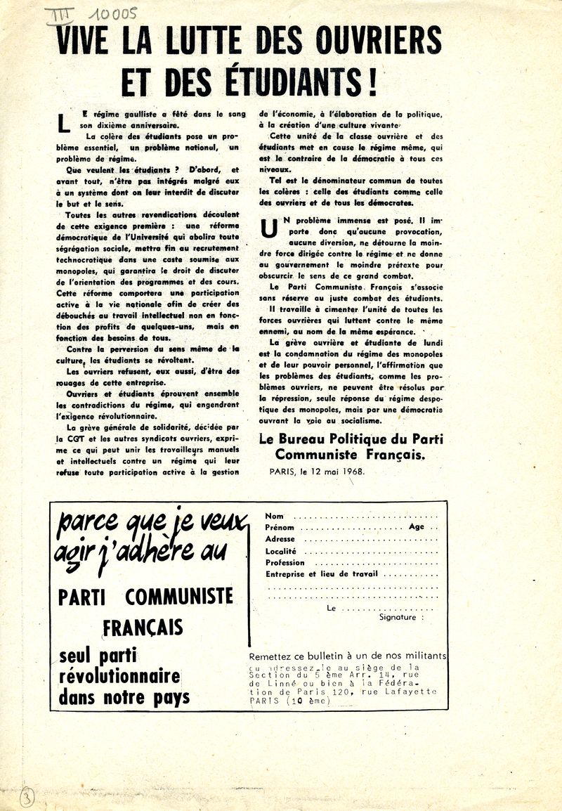 | Titre | "Vive la lutte des ouvriers et des étudiants !" |
