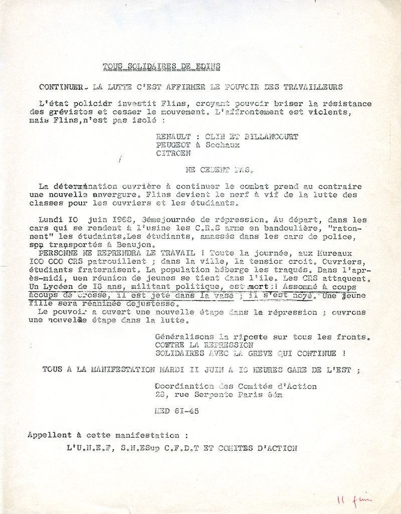 Manifestation Répression policière Etudiants pourchassés Grève générale Solidarité étudiants-salariés Occupation des entreprises/usines![]() |