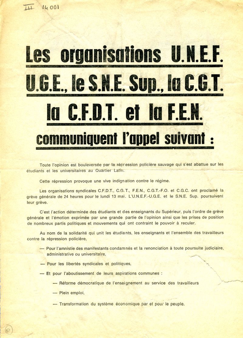 Notice n° 486 [Appel à la manifestation du 13 mai] | |