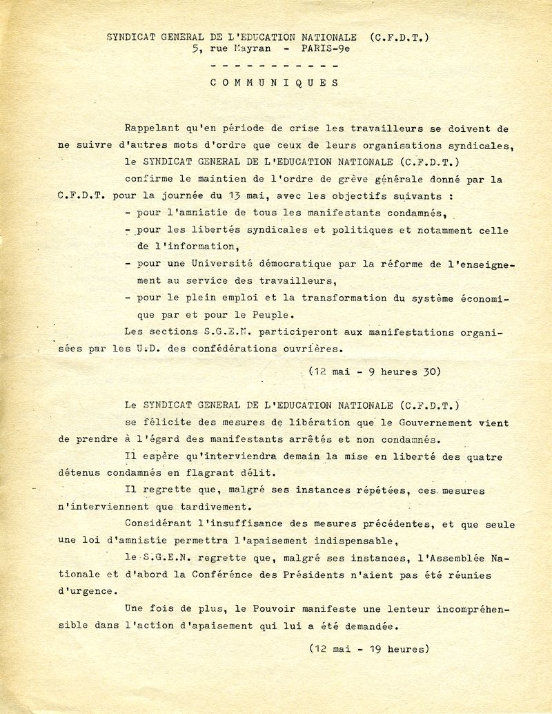 | Zone d'observations | Deux communiqués du 12 mai 1968. |